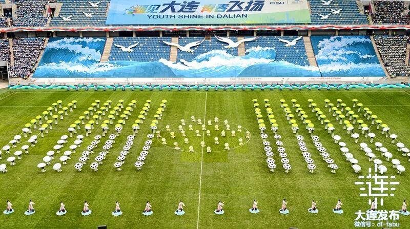 承擔(dān)開場(chǎng)儀式表演的,除了來自大連7所高校的1200多名大學(xué)生外,大連市童聲合唱團(tuán)的孩子們手持大賽吉祥物奔跑入場(chǎng),盡顯大連兒童的蓬勃朝氣;在《茉莉花》的表演中,來自大連歌舞劇院的演員們,以曼妙的舞姿詮釋中國(guó)傳統(tǒng)文化的獨(dú)特魅力;大連雜技團(tuán)在主題曲《我們要?jiǎng)倮分腥谌肭啻貉笠绲奈璧?,全程活力四射,將現(xiàn)場(chǎng)氛圍推向高潮。