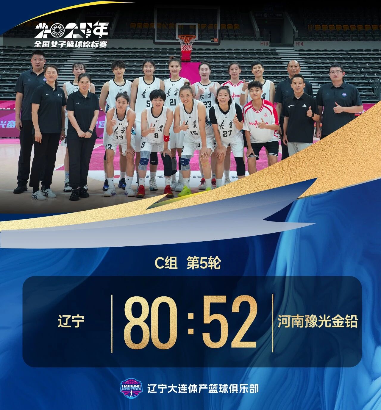 北京時間2025年9月21日19時30分,2025年全國女子籃球錦標賽浙江諸暨賽區(qū)第五輪,遼寧隊迎戰(zhàn)河南豫光金鉛女籃。全場比賽,遼寧隊攻防兩端表現(xiàn)穩(wěn)健,從第二節(jié)開始確立領先優(yōu)勢,最終80:52戰(zhàn)勝對手。遼寧隊以四勝一負的佳績位列小組第二名,成功晉級全國錦標賽決賽階段!
